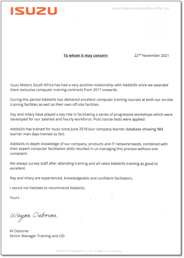 Addskills provides a high standard of service pre and post training to our clients.