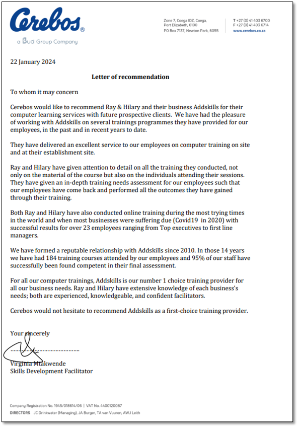 The Excel Foundation takes the learner into more depth of what Excel is, the terminology used in Excel and introduces them to the SUM, MIN, MAX and AVERAGE functions, and creating charts and print setup.
